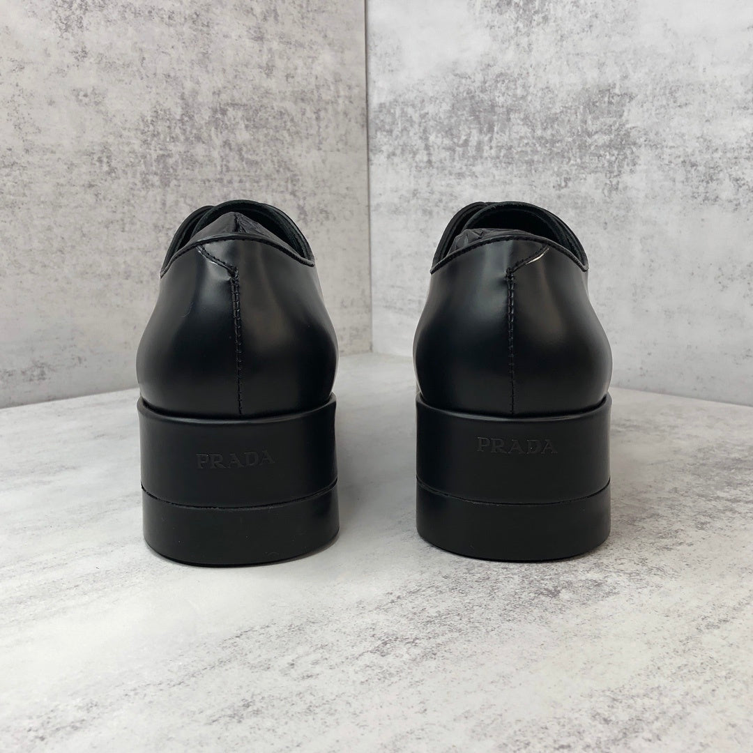 Prada Brushed Leather Derby Shoes "Black"
